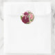 Sticker Rond Monogramme Script | Florale Rose Pâle et Bourgogne