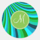 Sticker Rond Monogramme Super Bleu Vert arc-en-ciel Diapositive