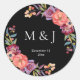 Sticker Rond Monogramme Tropical Élégant Noir Bourgogne & Plum
