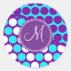 Sticker Rond Monogramme Turquoise initial Pois pourpres personn