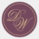 Sur un arrière - plan couleur vin, à l'intérieur d'un cercle doré, il y a un élégant monogramme de 2 initiales dorées écrites dans un élégant script calligraphique (les par défaut sont D et W). Il peut être utilisé pour "sceller" un faire-part de mariage, avec les initiales de la mariée et du marié, mais aussi pour le courrier ordinaire, avec les initiales du premier et du nom de famille.
