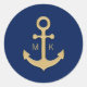 Sticker Rond MONOGRAMMES DE Mariage d'Ancre d'or bleu marine