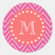 Sticker Rond Motif Chevron rose chaud | Monogramme de corail