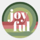 Enveloppe de Noël classique contemporaine étiquette avec couleur vert clair et foncé, rose et rouge motif abstrait et texte de voeux JOYFUL en blanc immaculé.