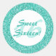 Numériquement élégant a créé aqua turquoise parties scintillant motif Sweet sixteen d'anniversaire thème de fête d'anniversaire sticker. Remarque : La parties scintillant n'est pas réelle. C'est une image imprimée qui imite l'aspect de la parties scintillant.