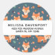 Autocollants d'adresse avec un motif réalisé avec des renards orange mignons et heureux. Fond vert foncé. Petits champignons et feuilles parsemés çà et là.