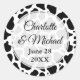 Autocollants ronds mariages. Motif arrière - plan de vache noir et blanc sans soudure.