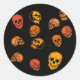 Un motif effrayant de crânes sur un arrière - plan noir. Les autocollants d'Halloween font de grandes astuces ou des cadeaux, et sont amusants pour décorer tous vos projets d'Halloween. <br>Voir tous nos autocollants Halloween dans notre boutique au ()! <a href="http://www.zazzle.com/stickermad/products?dp=0&cg=196880420703973077</a>Copyright Scarribaby Design, une marque déposée, et soutenu par la garantie Zazzle.