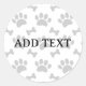 Un motif fait de pattes et d'os de chiots. Autocollants personnalisés en blanc et gris. Modifier le texte pour customiser. Design de dessin animé. Idée cadeau pour les amoureux de les chiens.