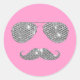Sticker Rond Moustache Diamant Drôle Avec Lunettes