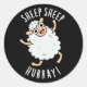 Sticker Rond Mouton Mouton Hurray Drôle Animal Pun Dark BG