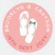 Sticker Rond Mr & Mrs Pink Flowers Flip Flops Plage Mariage