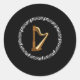 Sticker Rond Musique Irish Harp Player Notes musicales Irlande
