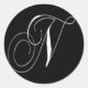 N monogramme avec un arrière - plan noir, écriture blanche initiale et bordure argent. Un autocollant parfait pour vos enveloppes mariages, sacs cadeaux ou autres décors pour votre mariage élégant.