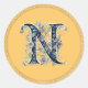 Sticker Rond N monogramme fleur d'or bleu