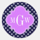 Sticker Rond Navy White Polka Dots Lilac Quatrefoil 3 monogram