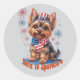 Sticker Rond Né à Sparkle - Joli Yorkie Patriotique 4 Juil