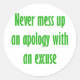 Sticker Rond Ne jamais gâcher une excuse avec une excuse