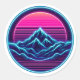 Sticker Rond Neon Mountain Circle Design - Retro Outdoor Aesthe