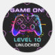 Étiquette Neon Video Game Level Up Anniversaire Classic Round