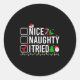Sticker Rond Nice Naughty I Tried Family Xmas Pajama Funny Chri