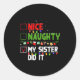 Sticker Rond Nice Naughty My Sister Did It Family Xmas Pajama C