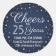 Ajoutez une touche de finition personnalisée à l'anniversaire mariage merci notes ou faveurs de fête avec ces autocollants ronds bleu marine et gris faux argent / scellés d'enveloppe. Tout le texte est simple à customiser ou à supprimer. Ce modèle est établi pour un 25e anniversaire, mais peut facilement être changé en une autre année ou un autre événement, comme un anniversaire. Design propose des points de confetti en faux feuille argent sur un arrière - plan noir, la calligraphie de script stylisée "Cheers to 25 years", et la typographie minimaliste moderne message personnalisable en bas. Veuillez noter que le gris est imprimé pour simuler l'argent et n'est pas du papier métallique.