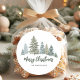 Célébrez la saison avec style avec cet autocollant rustique de Noël avec une forêt d'aquarelles d'arbres à feuillage persistant. Le design festif allie charme rustique et typographie moderne, ce qui le rend parfait pour vos enveloppes et cadeaux de Noël. Personnalisez avec votre nom de famille.