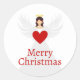 Célébrez l'esprit de Noël avec ce coeur de Noël Angel moderne Rouge Blanc Élégant Ailes Classic Round Sticker design. Tenant un coeur rouge vif, cet ange contient un message spécial de Joyeux Noël (ou un message de votre choix). Personnalisez cet autocollant en ajoutant l'en cliquant sur le bouton "modifier / personnaliser", en créant un design unique pour vos lettres ou emballages cadeaux. Ce design est également disponible dans un ornement. Design original par Kristy Carr McAdams de Energy Of Angels Art.