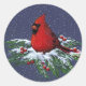 STICKER ROND NOËL : CARDINAL : OISEAU : ART