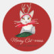 Un bel autocollant avec un chaton de Noël gris et blanc sur un arrière - plan rouge. Oeuvre originale de Caroline Bonne Müller.