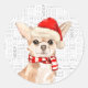 Sticker Rond Noël Chihuahua Chien Aquarelle Père Noël