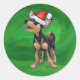 Animal Parade Festive Chihuahua Chien cadeaux de Noël et accessoires apportés par Imagine That! Le design présente l'art original d'un Chihuahua noir et bronzé mignon décoré pour les vacances avec un chapeau de Père Noël rouge vif sur la tête et une couronne de saint vert festif sur le cul avec un arc rouge joyeux. Sur de nombreux cartes de fin de année et cadeaux, le petit chien noir et bronzé amusant se dresse dans un paysage enneigé avec un ciel étoilé bleu texturé peint par Traci Van Wagoner. Cet art amusant pour les animaux de compagnie conviendra parfaitement aux amateurs de Chihuahua, aux amoureux de les chiens et aux amateurs d'art animal humoristique de tous âges. Rejoignez la Parade des animaux et sourirez quelqu'un que vous aimez avec un cadeau de notre Chihuahua festif vêtu pour les vacances. Malheur !