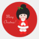 Sticker Rond Noël de la fille Kokeshi en rouge