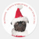 Sticker Rond Noël Festif mignon Carlin noir Chiot Père Noël