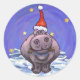 Animal Parade Festive Hippo Cadeaux et accessoires de Noël présente notre oeuvre amusante d'un hippo mignon planté dans un chapeau de Père Noël rouge debout dans un paysage enneigé contre un ciel étoilé bleu foncé texturé peint par notre talentueux illustrateur pour enfants, Traci Van Wagoner. Sur le dos de beaucoup de ces amusants safari animal cadeaux, vous trouverez aussi notre hippo fantaisiste du dos portant une couronne sacrée avec un arc de Noël rouge. Notre art hippo festif fait des cadeaux uniques pour les amoureux de Noël, les amateurs de hippo, les amoureux des animaux, les amoureux des animaux de safari, les amoureux des animaux d'Afrique et les amateurs d'art mignon sur votre liste de cadeaux cette saison.