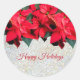 Sticker rond classique de Noël moderne Fleurs rouges de Noël. Elégant, beau, design moderne. Avec un menu Zazzle facile à utiliser; Mes designs peuvent encourager les clients à créer leurs propres produits uniques. Le style, la taille et les couleurs des polices peuvent être changés. Éléments correspondants disponibles.