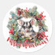 Sticker Rond Noël Opossum Berries Holly Feuilles