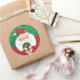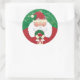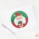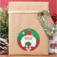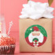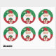 Cet autocollant de Noël présente un Père Noël joyeux tenant une couronne avec un arc rouge et une souris endormie, des sucres de canne rayés verts et rouges et un saint festif avec des baies cachées dans son casquette. Personnalisez avec votre propre message ou utilisez celui fourni, "Ho, Ho, Ho. . . Joyeux Noël !" Conçu par l'artiste Susan M Coffey.