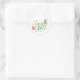 Cet autocollant ludique présente le dicton "laissez-le neiger" avec des couleurs alternées et des accents pétillants. Les couleurs sont rose, rouge, vert et bleu clair.