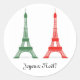 Sticker Rond Noël rouge et vert Thème français Tour Eiffel