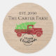 Un joli sapin de Noël dans un design de camion rouge. Personnalisez-vous avec votre nom de famille et votre année bien établie, avec un dessin en ligne ornementale noire qui dit "Joyeux Noël", une enveloppe scellée pour toutes vos cartes de Noël!