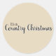 Sticker rond de Noël de campagne beige simple. Arrière - plan beige. En noir avec des tons blancs sont les mots "It's a Country Christmas" dans deux types de typographie.
