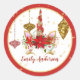 Sticker Rond Noel visage Unicorne personnalisé Rouge or
