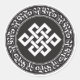 Le noeud sans fin est un noeud symbolique et l'un des huit symboles Auspicious du bouddhisme. Le noeud Endless symbolise Samsara, le cycle sans fin de la souffrance ou de la naissance, de la mort et de la renaissance au sein du bouddhisme tibétain. Ce noeud sans fin est entouré d'un motif circulaire vintage floral, le design est en noir et blanc.