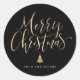 Les autocollants cadeaux de Noël personnalisés présentent une fausse feuille d'or calligraphie manuscrite "joyeux Noël" script et arbre sur arrière - plan noir, simple, moderne et élégant.