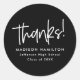 Ajoutez une touche élégante à vos enveloppes de cartes de remerciements de graduation et sacs de faveur de la fête de graduation avec des autocollants de graduation personnalisés. Les autocollants de graduation présentent "merci !" dans un script blanc écrit à la main avec un arrière - plan noir ou la couleur de votre choix. Personnalisez les autocollants de remerciement de la graduation noire en ajoutant le nom du diplômé, le nom de l'école et l'année de fin d'études.