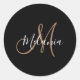 Monogramme d'or noir élégant Nom de script élégant Sticker rond classique