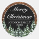 Sticker Rond Noir Snowy Bois & Pin Forêt Joyeux Noël