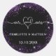 Un élégant arrière - plan noir, décoré de faux éclats violets. M. et Mme avec un coeur. Personnalisez et ajoutez vos noms et votre date de mariage. Texte blanc.
